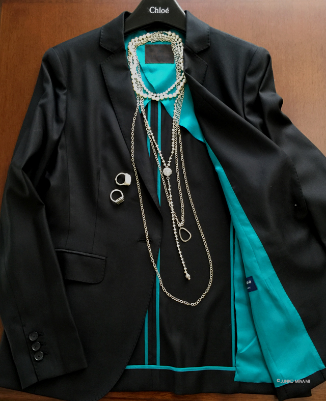 写真は、ずいぶん前に一度diaryに載せたもので、覚えてくださっているかたもいらっしゃるかと思います。ちょうど渡航前にパッキングをする際に撮ったものでした。旅先にはスケジュールに合わせてアクセサリーを持って行きますけれど、レイヤードも考えておくと、足し算引き算のコーディネートの楽しみが増えます。お手持ちのパールのネックレスも、冠婚葬祭の時だけではなく、ロングのネックレスと合わせることで普段にも気軽に着けられるように。