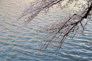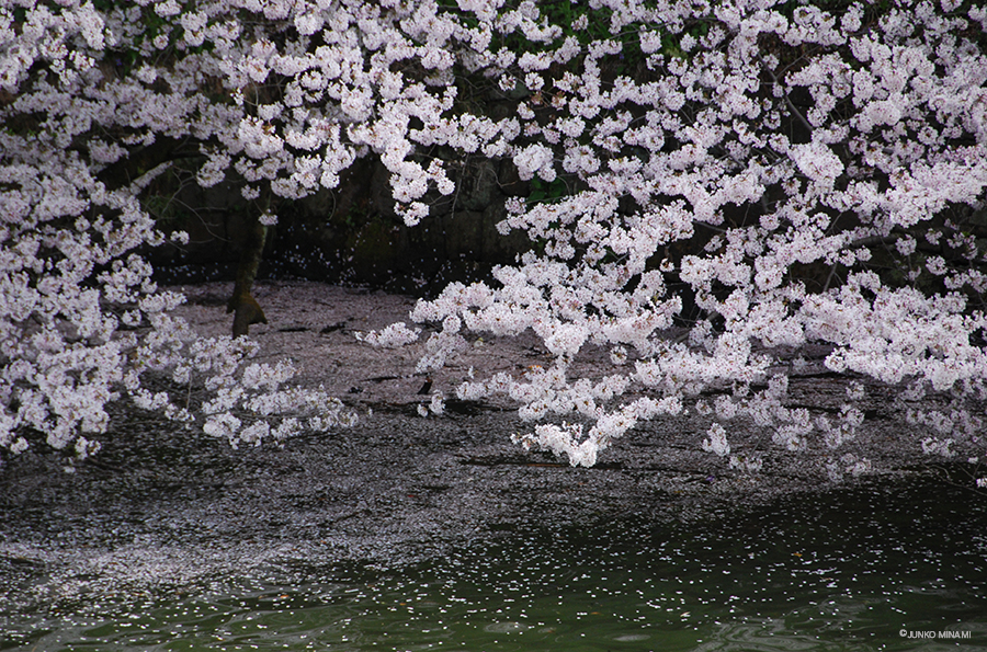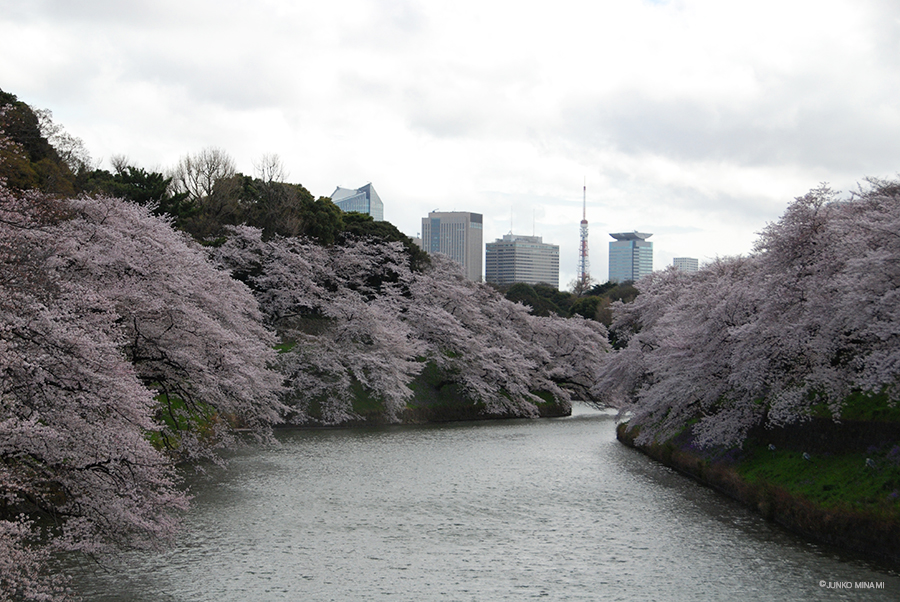 朝早くから机に向かっていたのですが、さっと上着を着て千鳥ヶ淵に行きました。ここの桜はお堀の水面の翠とのコントラストが美しくて、毎年行きたくなります。ちょうど昨夜の強風と雨で花が散っていそうでしたが、報道ステーションの映像を見ていたらとても綺麗で、行かなければと思いました。