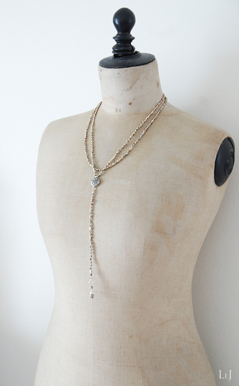とても繊細なのに、くっきりとしたY字が印象深く美しいラインを描きます。イリデッセンスを含んだ、ゴールドとブラウンとを往き来する繊細な色合いのパール。からだのラインに沿うネックレスはとてもエレガントで、大人の女性にお薦め出来るアクセサリーです。