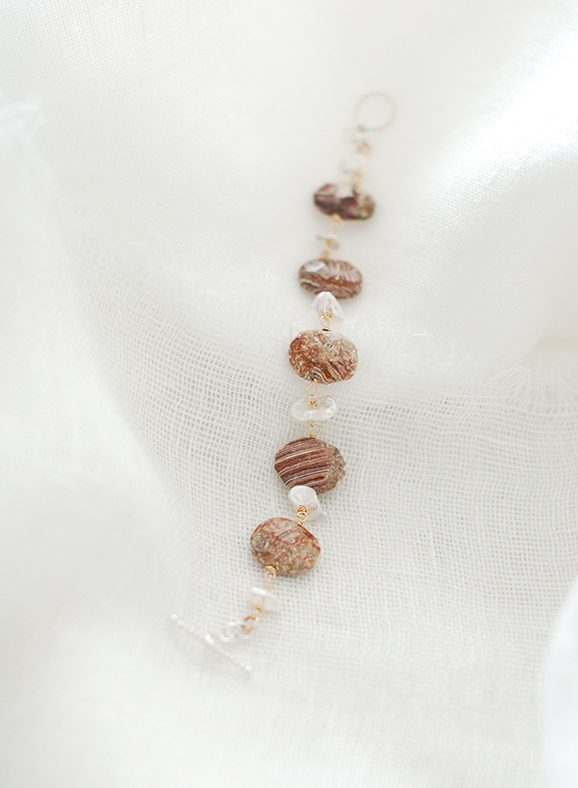 表面のカットがとても美しい、白い花を思わせるブレスレット Gigi