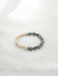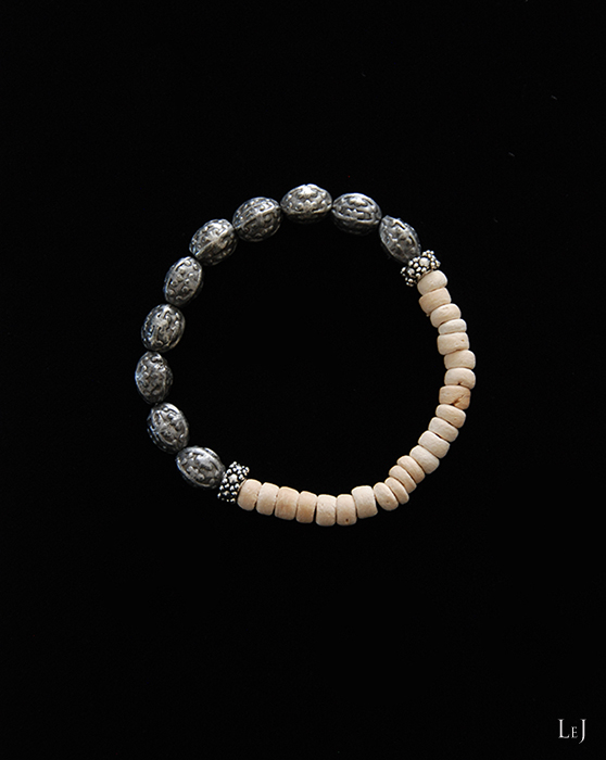 無彩色に近いソフトな印象が、いろいろな素材を引き立て、仲良くフィット。シルバー925のクラシカルなパーツが引き締め役。一点でも、リストウオッチやシルバーやレザーのブレスレットと仲良くなれます。ぜひコーディネートをお楽しみください。