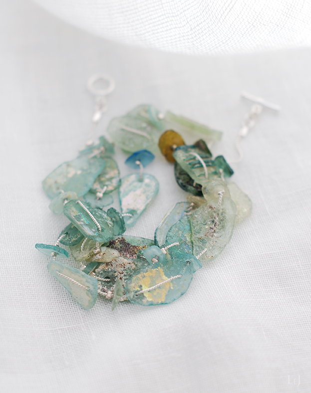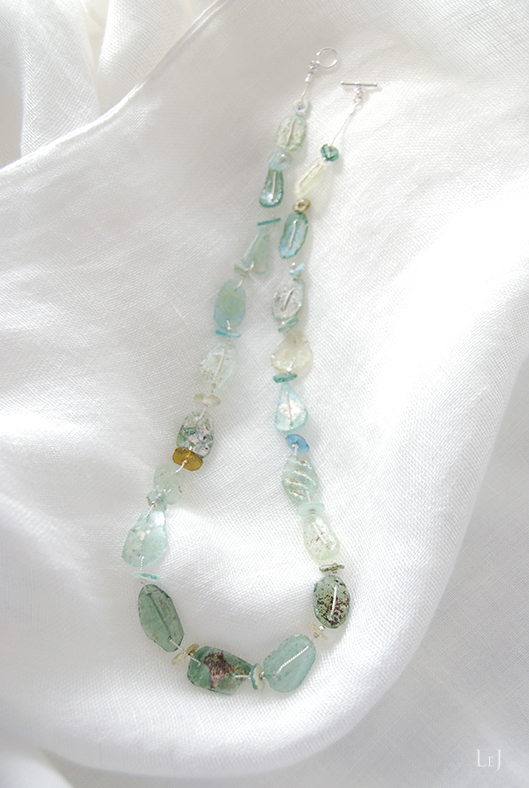ローマングラスをシルバー色でアレンジした美しいネックレス Romaine1(ロメーヌ1)