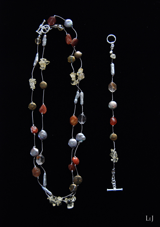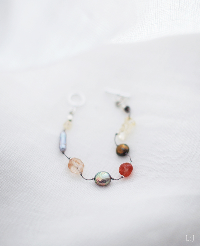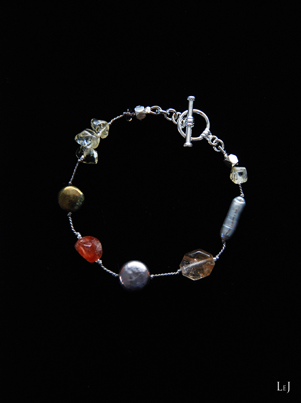 LeJが集めて来た、個性ゆたかな天然石をちりばめてシルク糸に結び留めた Quitterie3(キトリー3)。