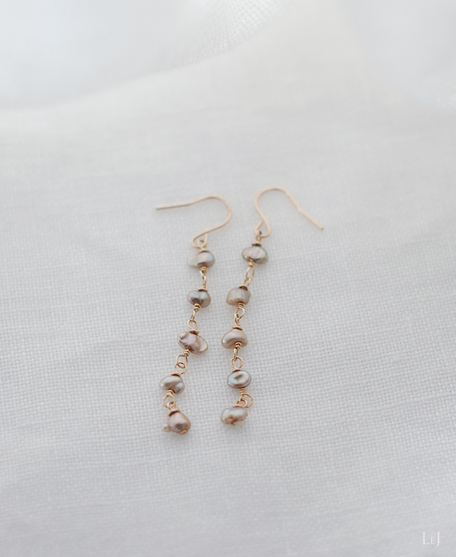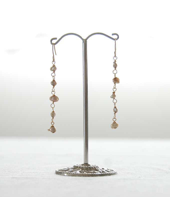 ノーブルなシャンパンいろのけしパールが5粒、ゆらゆら揺れるピアス Lia4 をONLINE STOREに公開しました。
