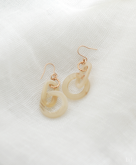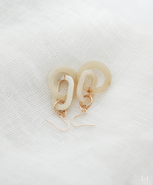 表情ゆたかなホーン素材のリングをやわらかなK14ゴールドフィルドのゴールド色に合わせたピアス Gisèle8のページ をONLINE STOREに公開しました。