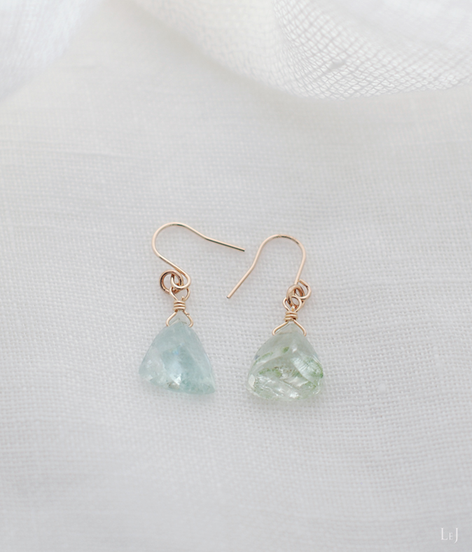 ほんのすこしの、ペールグリーンにブルーがほのかなバイカラー、 Lia14のページ をONLINE STOREに公開しました。3つめの、ベリルのピアスです。