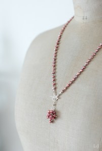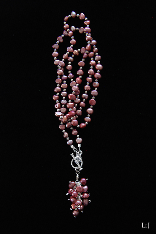 Agnès(アニエス)は、グレイがかったプラムピンクのパールにフリンジを付けたネックレス。