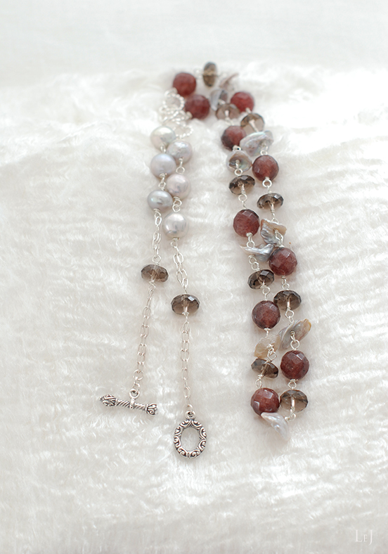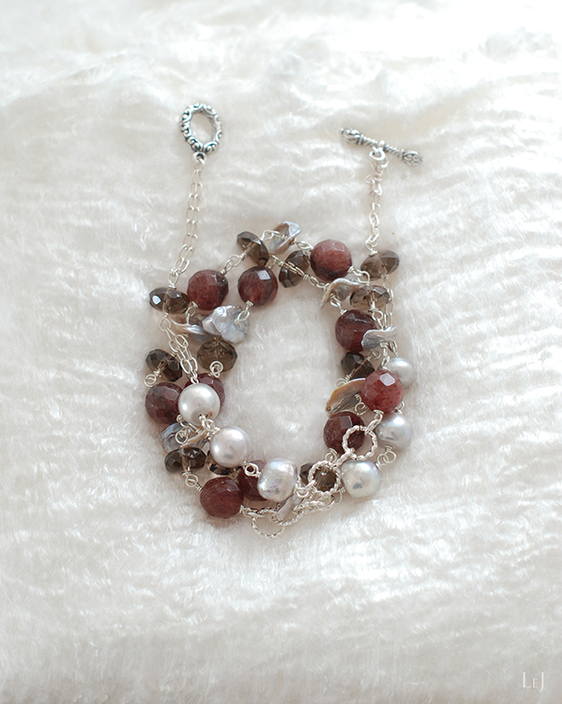 素材:モスコバイト・淡水パール・けしパール・スモーキークオーツ・シルバー925・アーティスティックワイヤー
