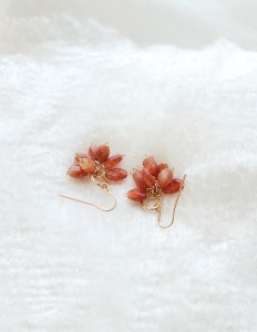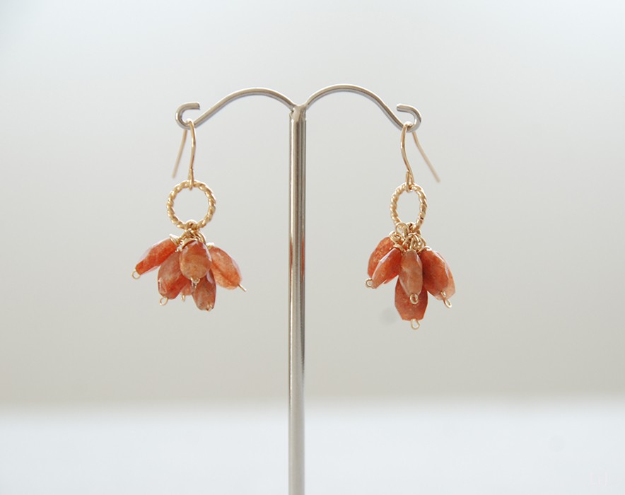 小さなサンストーンをブーケのように束ねた、ゆらゆらと葡萄の房のように揺れるピアス、 Lia18のページ をONLINE STOREに公開しました。