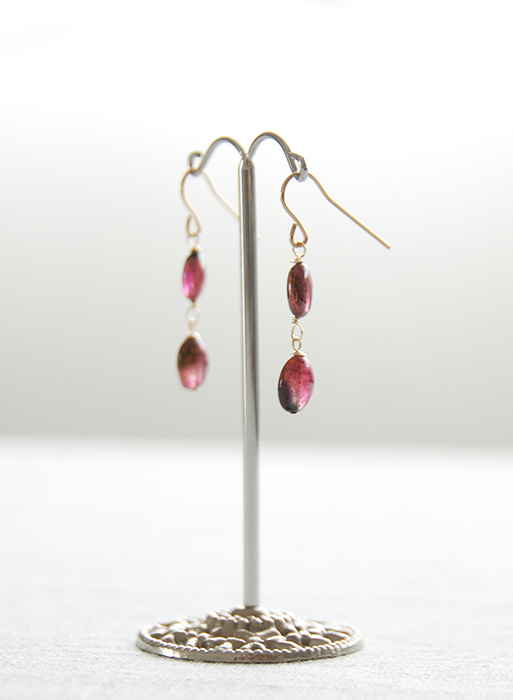 微睡むような大粒のピンクトルマリン、頬に赤みがさすようなやわらかな雰囲気を作るピアス、 Lia21のページ