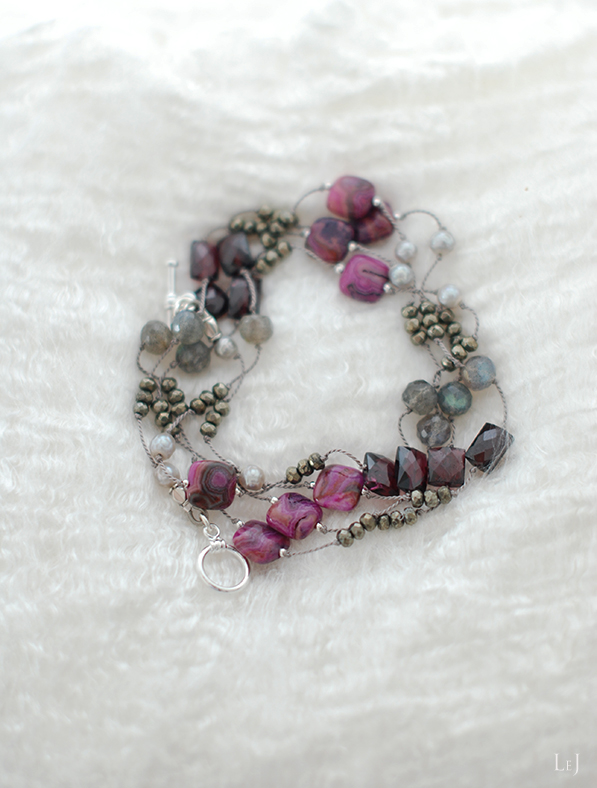 素材:ラブラドライト・ファセッテドレクタングルカット ガーネット・シルバーパイライト・シルバー色カットパール・パフスクエアカットマーブルピンクアゲート・シルバー925・メタル・シルク糸