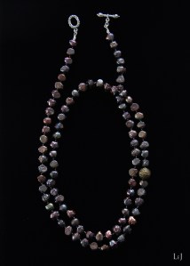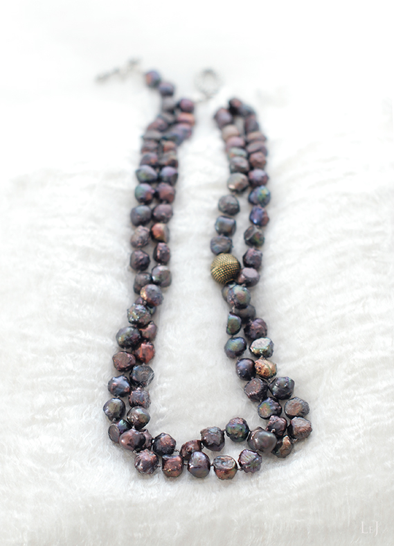 ブラウンからブルー、グリーンへと色調が行き来するパールに、ゴールド色のパーツをポイントにしたネックレス、 Astrid(アストリ)のページ をONLINE STOREに公開しました。