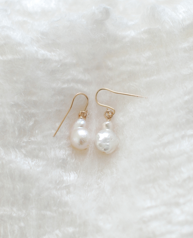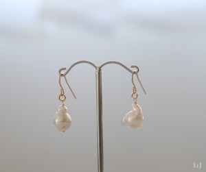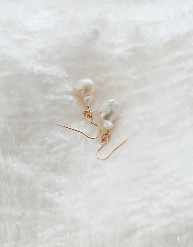 フォーマルな真円のパールも素敵なのですけれど、有核パールには独特な表情や深みがあって、LeJではよく使う素材です。角の出来方やシェイプには、いつも仕入れをするパールの専門店でもファンがたくさんいるそうです。
