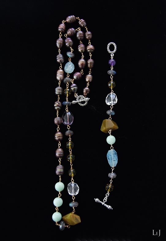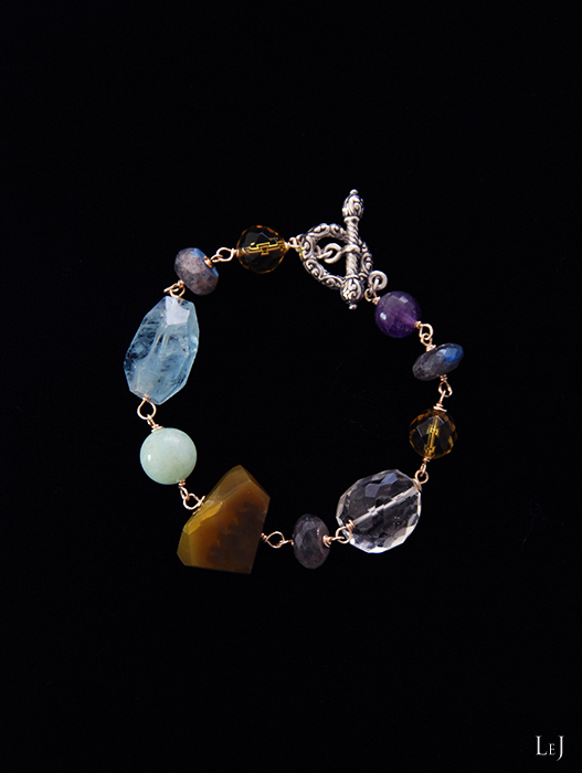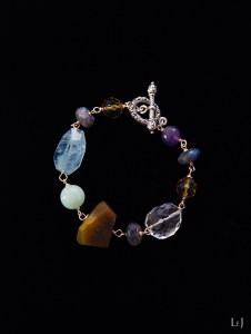Regardsly(レガズリー)ネックレスと一緒にお届けしたブレスレットは、久しぶりの大粒の素材を集めたものでした。実はその前に雑誌 ミセス誌の10月号のページが頭のなかに残っていて、この、とてもめずらしくて心に残るグリーンオパールを使いたいと思っていたのでした。ネックレスの仕上がりが好きだったので、すぐにご注文いただけたことが嬉しく、また、ブレスレットも張り切って制作しました。