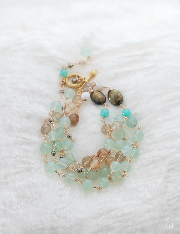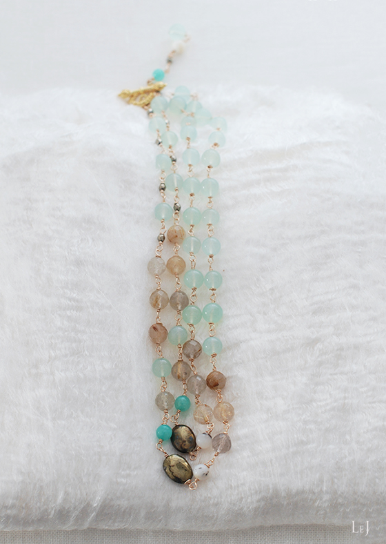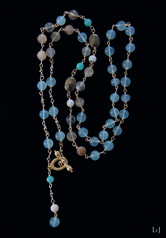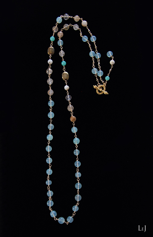 きれいなオーシャングリーンのカルセドニーを見つけて、地中海を思わせる幸福感に満ちたネックレス、Adriana(アドリアナ)を作りました。