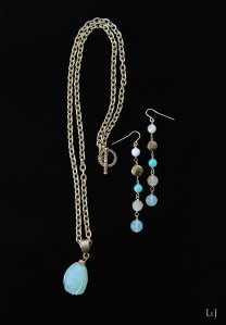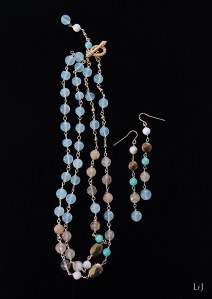 きれいなオーシャングリーンのカルセドニーを見つけて作ったAdriana(アドリアナ)ネックレスとお揃いのピアス、Lia32。