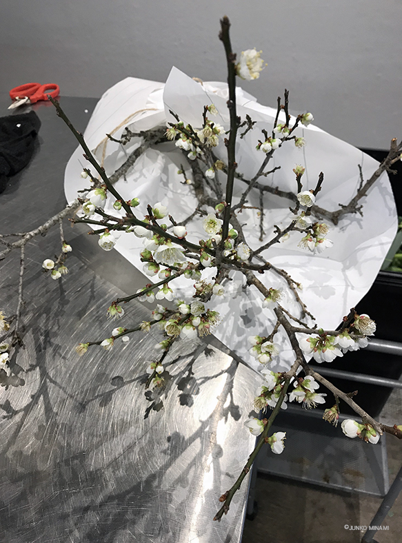 お正月用に仕入れられた枝ものを見に、毎年暮れにはいつもの花屋さんに伺っていたのですが、今年はタイミングが合わず気になっていました。