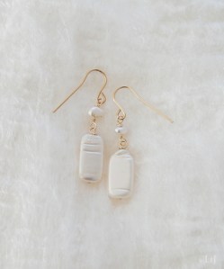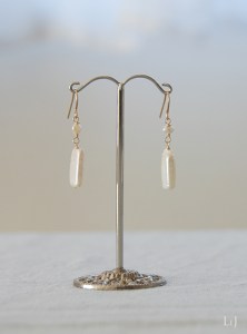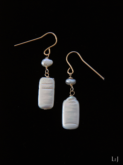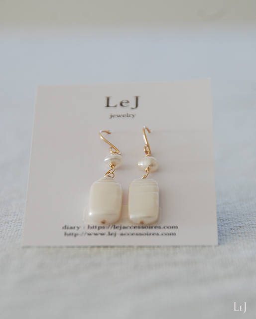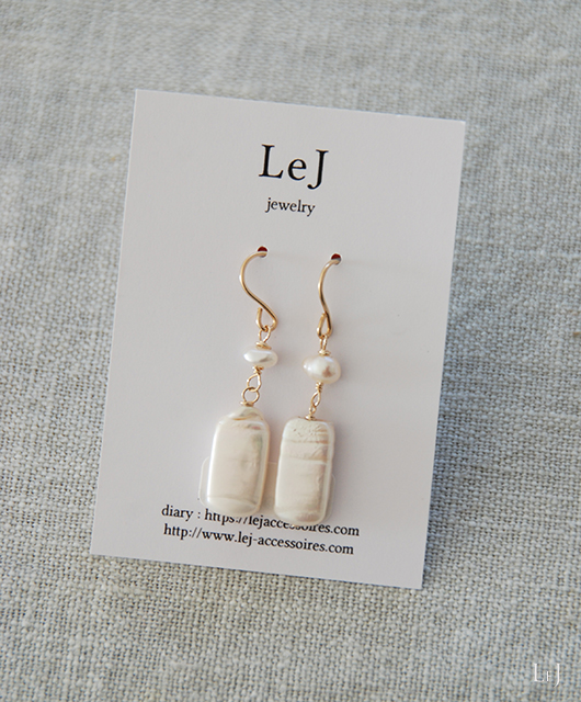 レクタングル(長方形)のパールは、モダンでシャープな印象。頬に光を集めて明るさをもたらせクールな雰囲気を作り、小さなパールが一緒に揺れてやわらかさをプラス。