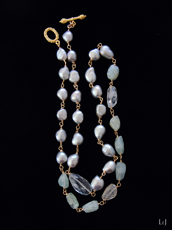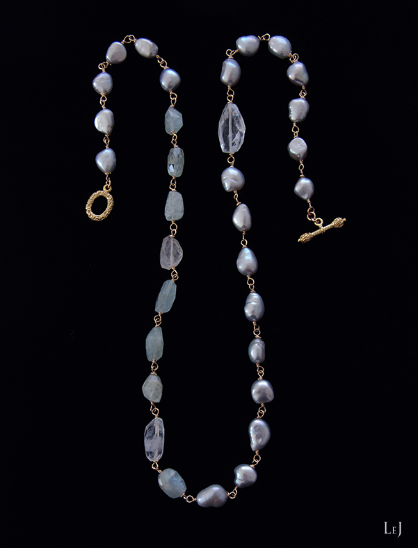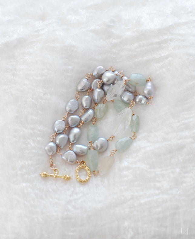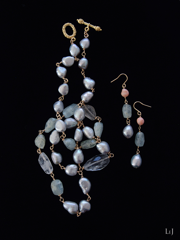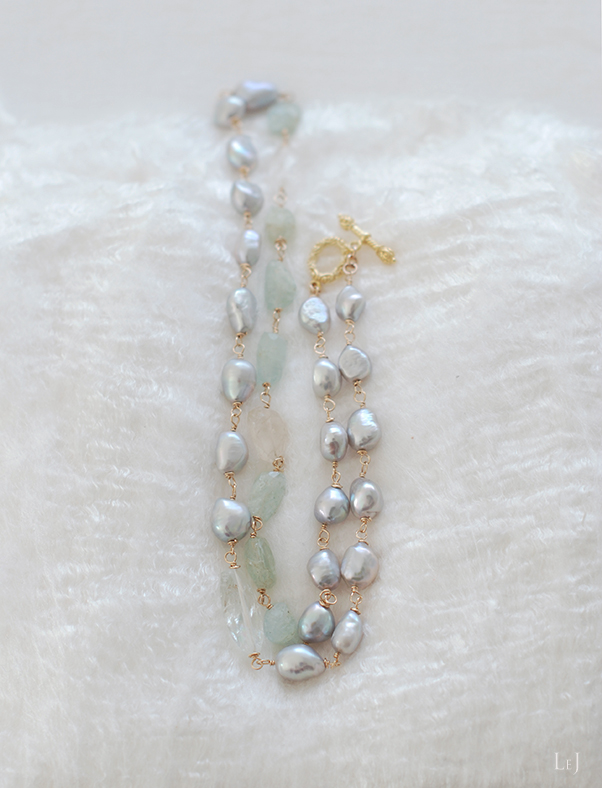 あたたかみのあるパールと儚げな美しさのアクアマリンのアクセサリーは、LeJがずっと作って来たもののひとつ。