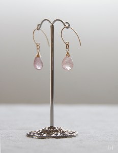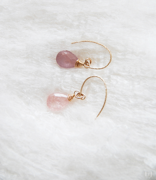 この初めてLeJで使うピアスパーツはこれからもしっかりストックして、使ってゆこうと思っています。テイストをしっかり持っていながら天然石を引き立てられるパーツは、ありそうで、そうそうありません。テクスチャーの地模様が少しだけ反射して光を集め、頬の横で空間を作るかのようです。