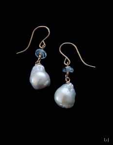 サファイアの、さまざまな色とニュアンスの違う4点とバロック有核パールのピアスLia50、