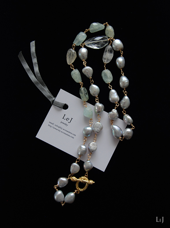 すべての原色や強い色に、ほんのりとグレイをひとふりした色。寄り添い、また優しく包み込む包容力のようなものを持っている色。それは価格に関係なく無意識に選んでいるようです。だから、LeJのアクセサリーのほとんどはコーディネートしていただけるものです。
