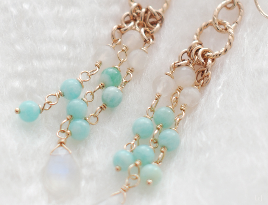 このアマゾナイトとK14ゴールドフィルドのゴールド、そしてムーンストーンがとろけるように美しい様子をご覧いただければ嬉しいです。