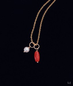 ボルドーからピンクの天然石にあこやパールを加えた8つのチャームの40cmのネックレス petit four(プティフール)4のページ をONLINE STOREに公開しました。