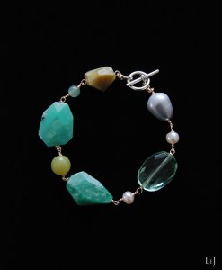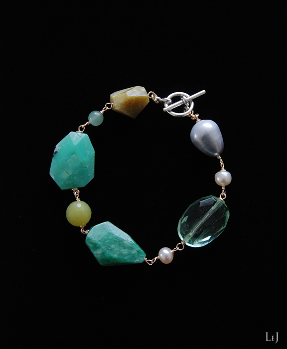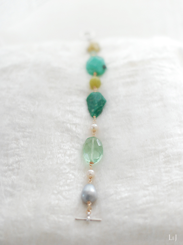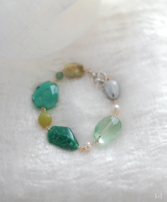 グレイからグリーンをへて繊細なグリーンイエローへと色展開する天然石を集めた、イタリアンカラーのブレスレット Amalfi24。