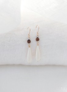 Amalfi26は、ボーンビーズとブラウンサンダルウッドのシンプルなピアス。ホワイト&ブラウンの色合わせはとても自由で、シルバーやターコイズ、パールとも仲良くなれます。