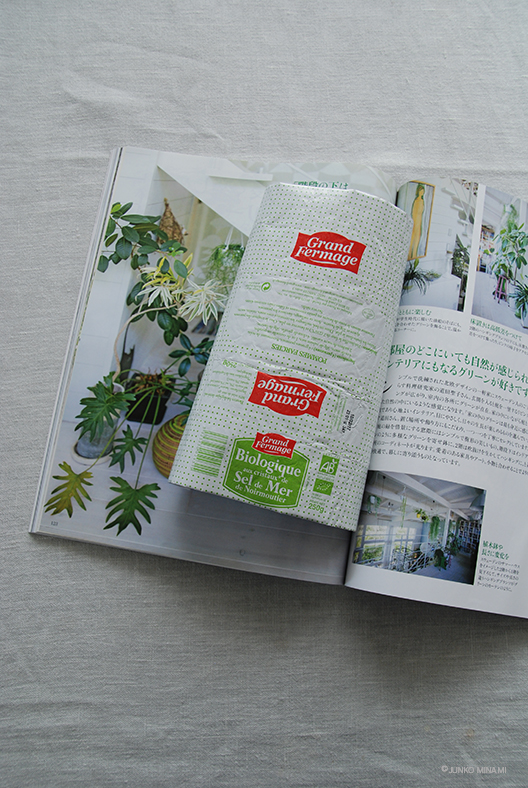メーカーによって紙質や手触りやフォント、デザインにバラエティがあって楽しいもの。バターそのものがなかなか減らないし終わらないけれど、包み紙を綺麗に洗って乾かして雑誌に挟んでおいてしわを取ります。ところがそうしておいたことそのものを忘れていて、いつも雑誌を処分するときに発見して苦笑い。