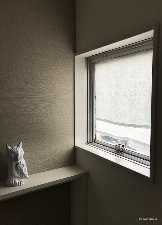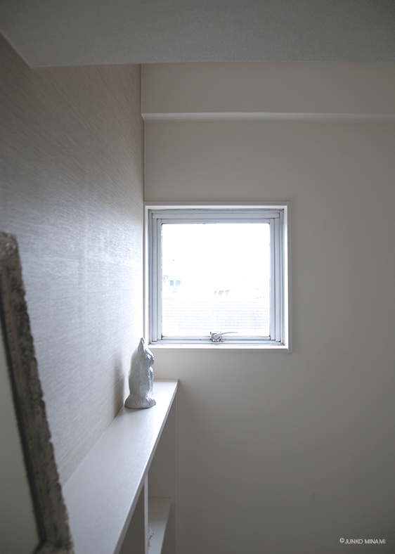 玄関の温度を左右するほどに強い陽射しが射し込む、小さな窓。