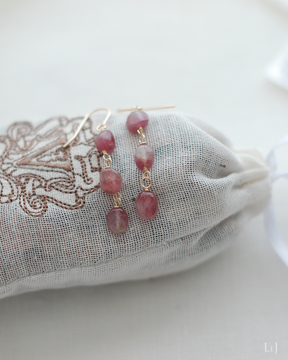 Lia55は、しっとりとした大つぶのピンクトルマリンのピアス。