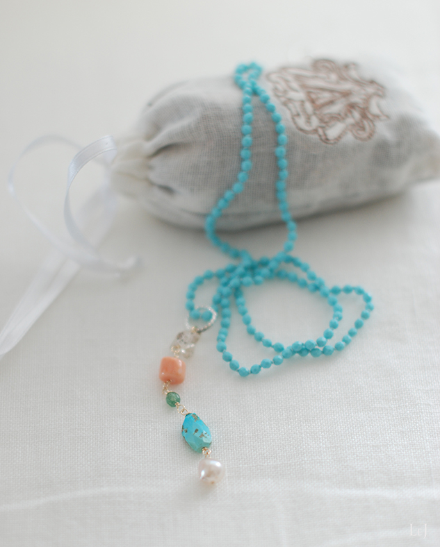 シルバー925のクラシカルなリングにはアリゾナターコイズやピンクコーラル、あこやパールなどの、テイストをぎゅっと濃縮したチャームを付けて、ネックレスに通したり自由にアレンジ出来るアクセサリーになりました。