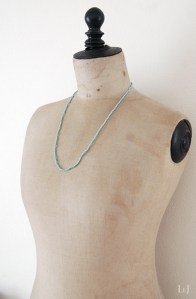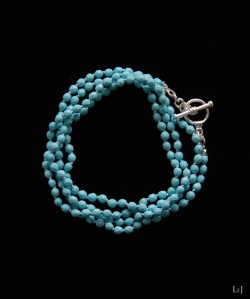 端正なカットの、澄んだ空を思わせるブルーマグネサイトをひとつひとつ結び留めて、結び目もひとつのデザインに。