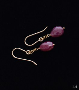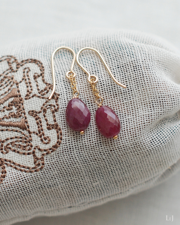 マゼンタ色のルビーはスリランカのもの。10×8×5mmの粒にはニュアンスのあるカット。アールの美しいピアスパーツやチェーンにもこだわって大切に仕上げました。