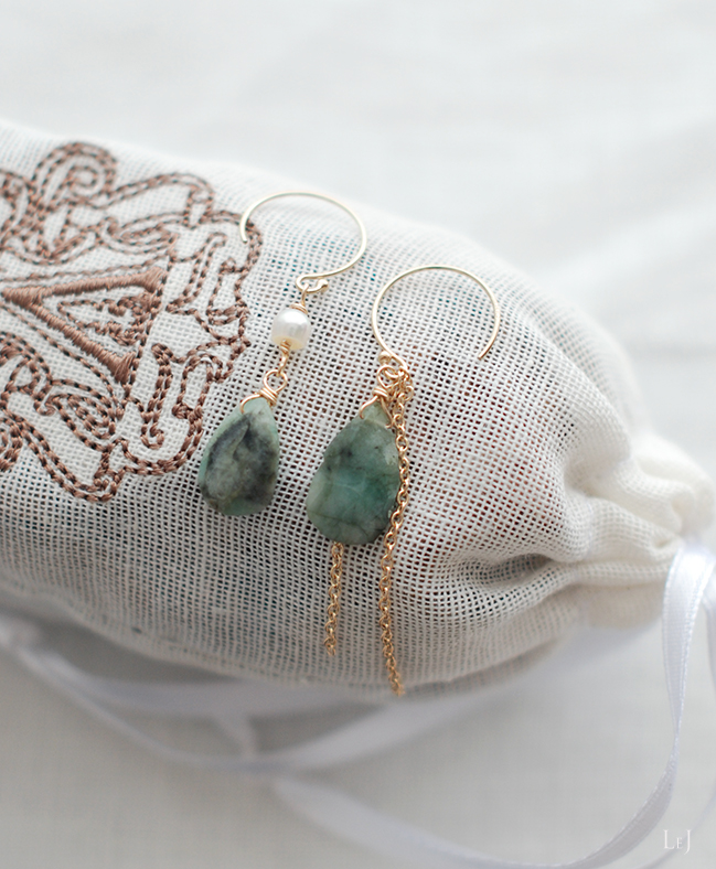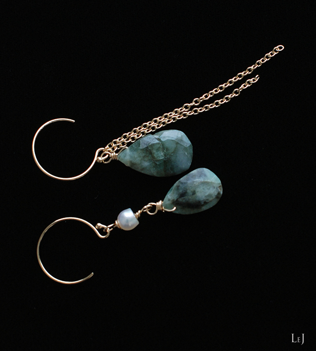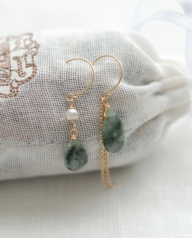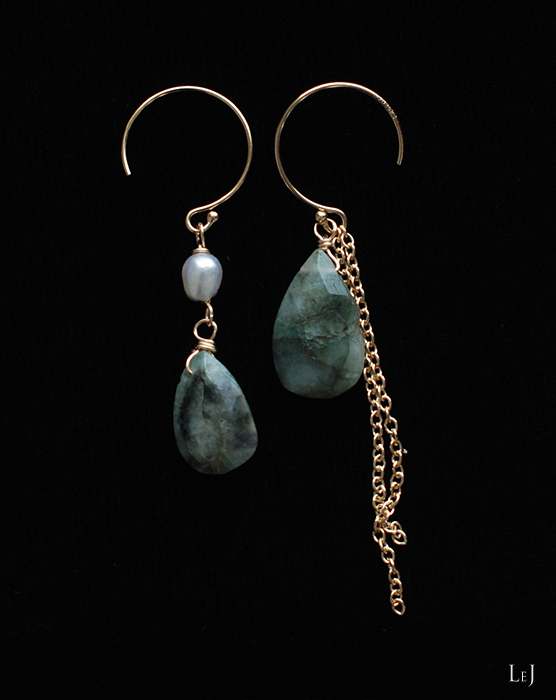 素材:エメラルドファセッテドブリオレット・あこやパール・K14ゴールドフィルド