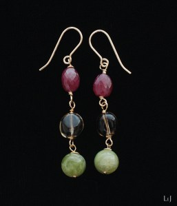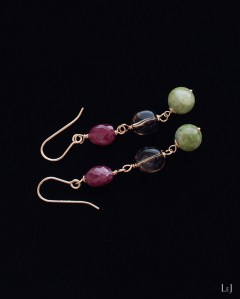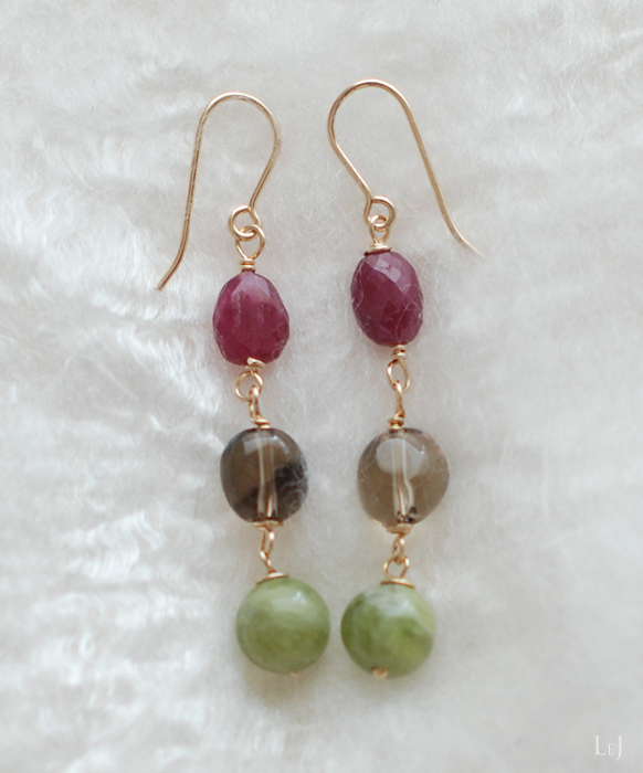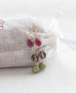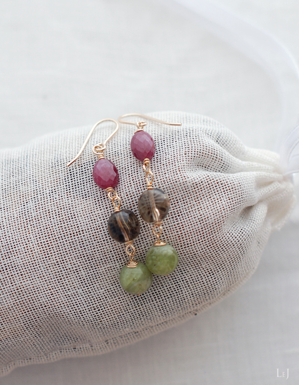 Dorothéeのアイドクレースにやわらかなニュアンスのスモーキークオーツとルビーを加えたDorothée-pピアスは、こくのある素材が静かに揺れるピアス。