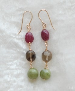 素材:ルビーファセッテドタンブル・アイドクレースラウンド・スモーキークオーツタンブル・K14ゴールドフィルド