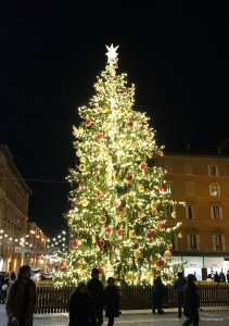 みなさまに、メリークリスマス。ボローニャ、マッジョーレ広場のクリスマスツリーです。