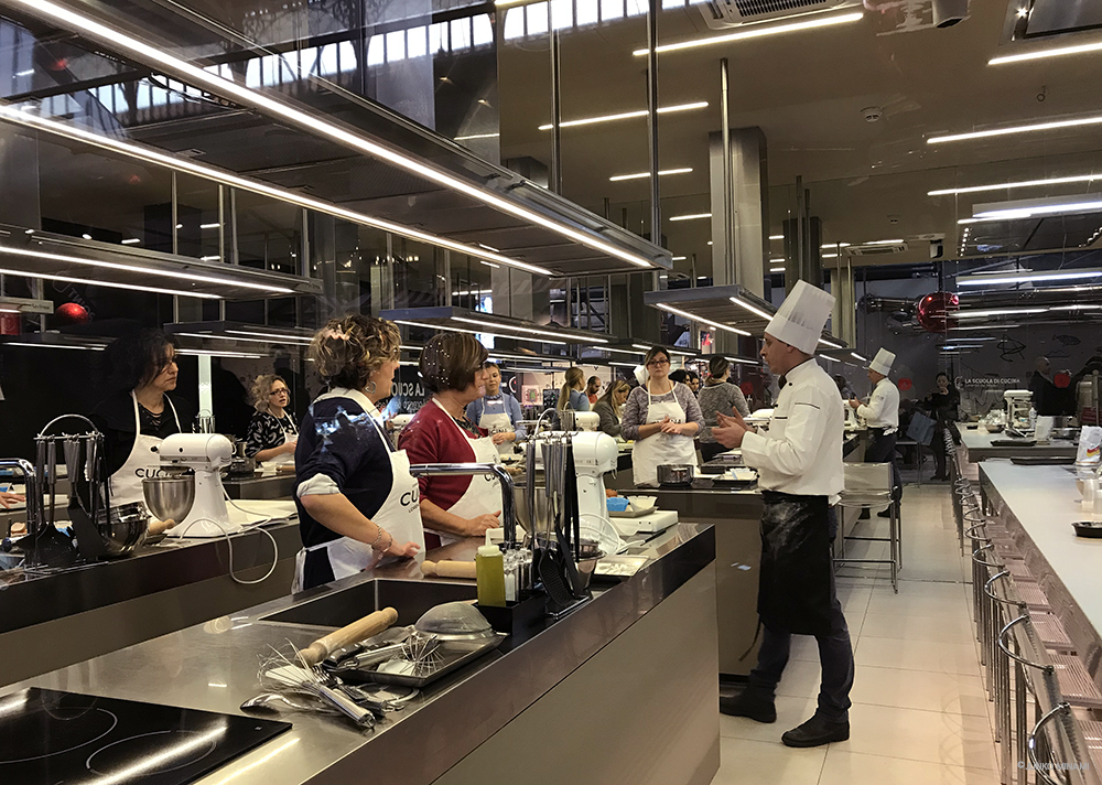 写真は、フィレンツェの市場のなかにあたらしく出来ていたお料理教室。向こう半分は鏡だから決して広くないけれど、美味しいマンマの味が漂って来そうです。