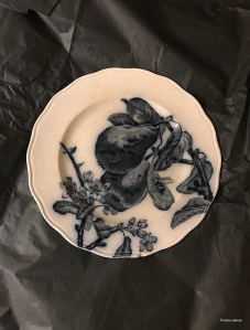 このプレートはイタリアで買ったもので、フランスで100年ほど前に閉じられた窯で作られたものでした。大切にしています。