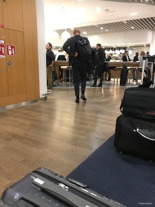 写真はフランクフルト空港の、女性がほとんどいないラウンジにて。