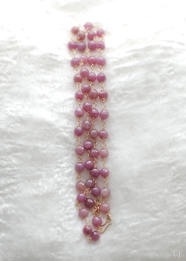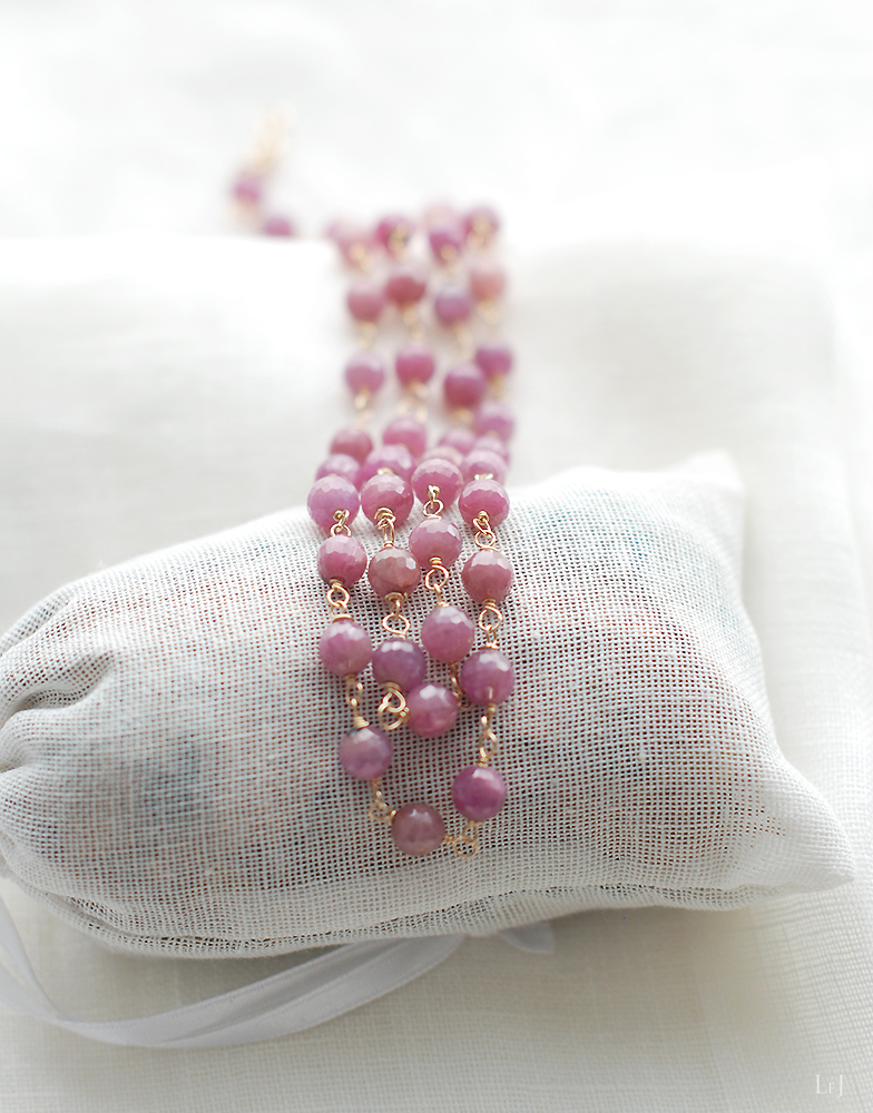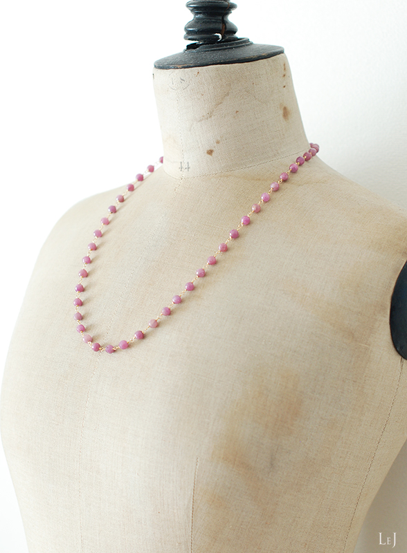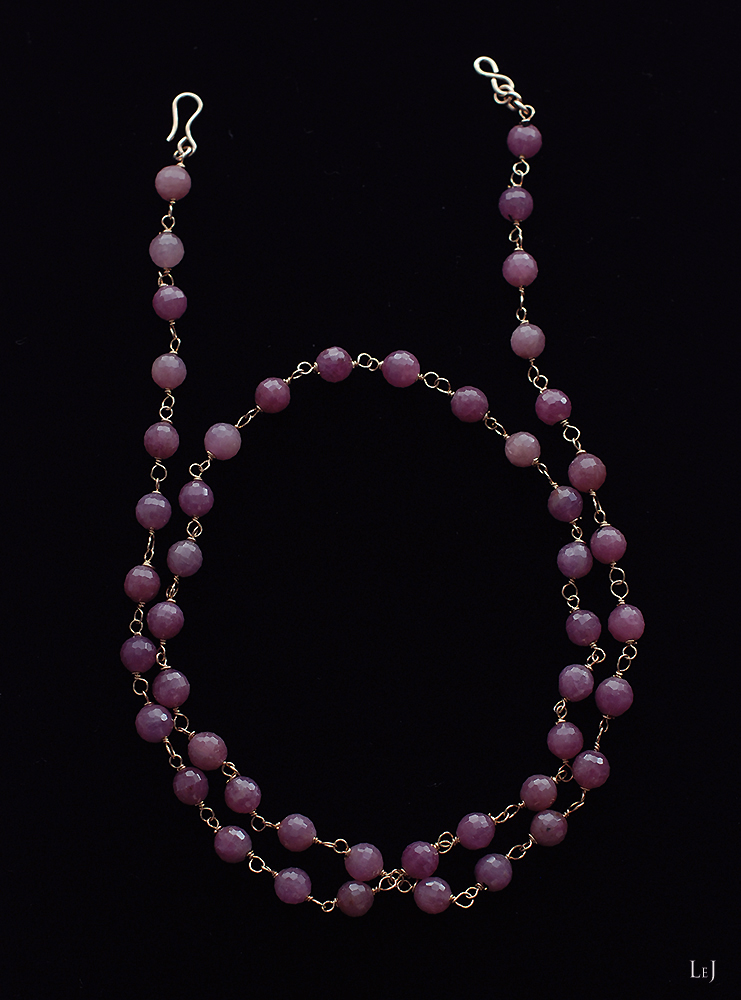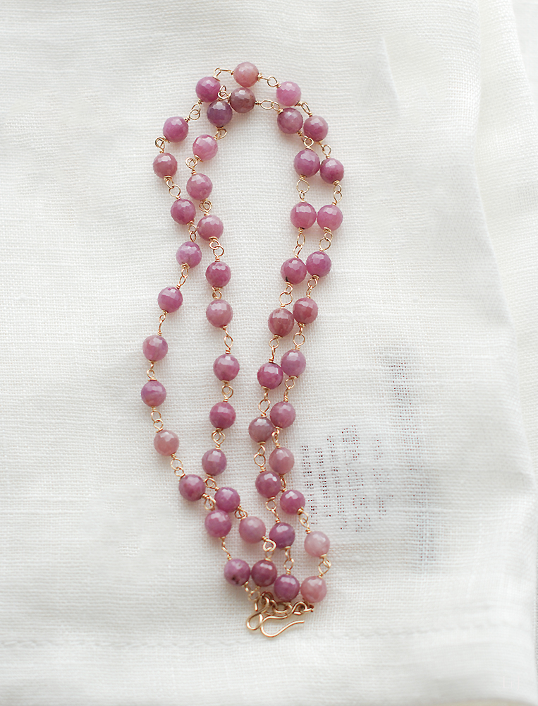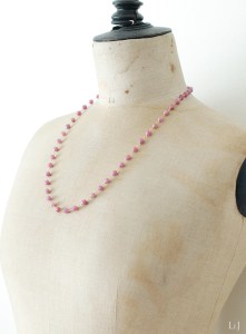 ふんわりころころしたこの粒はルビーの甘さと気品を思わせて、丁寧なカットとほんの少しの色の揺らぎをそのまま活かしてミドルレングスのネックレスに。