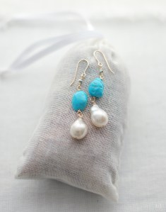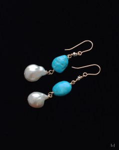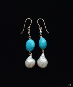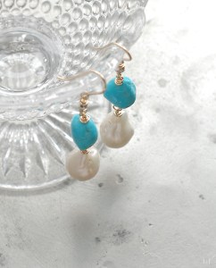 とてもラグジュアリーな、お肌のトーンを一段明るくするターコイズとパールのピアスです。この機会にお薦めしたいと思います。