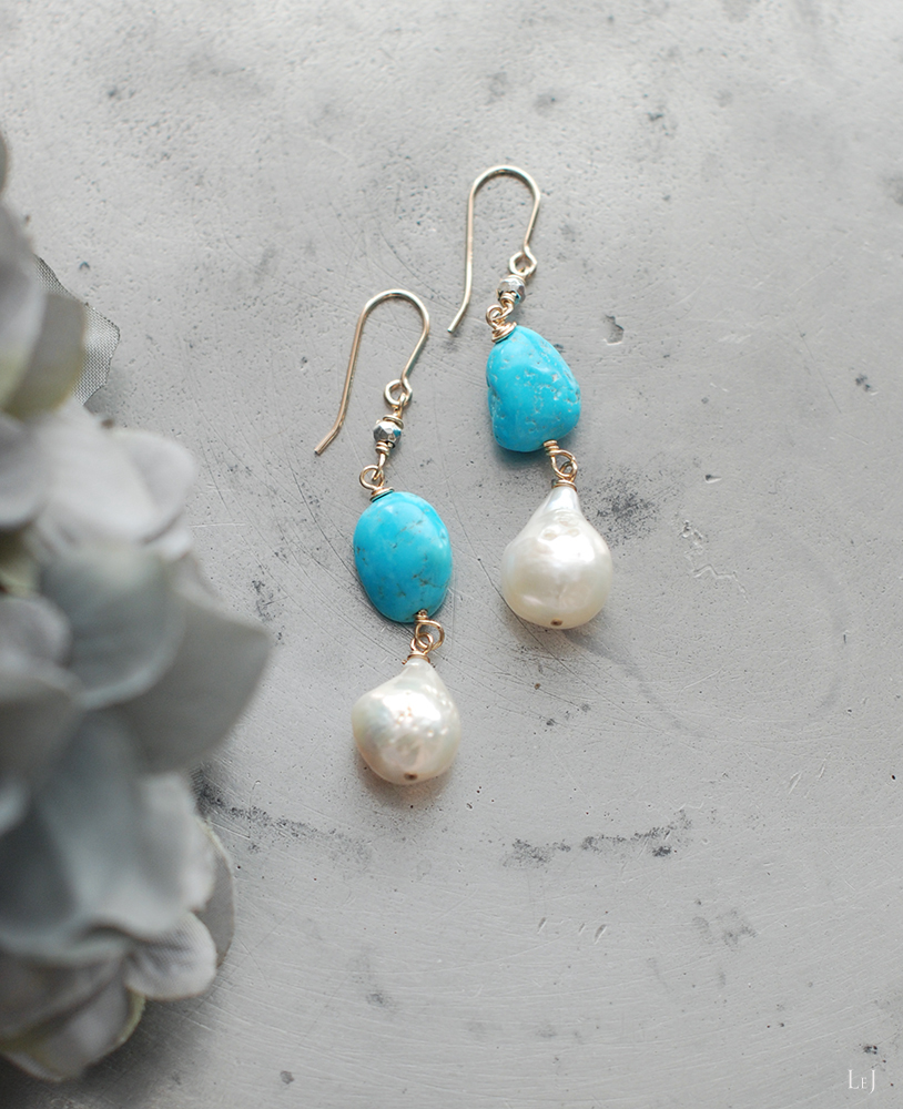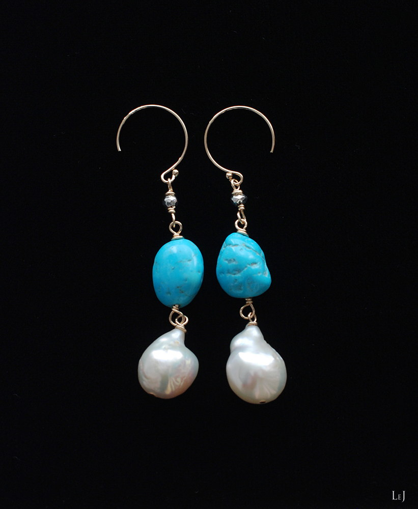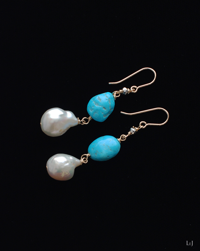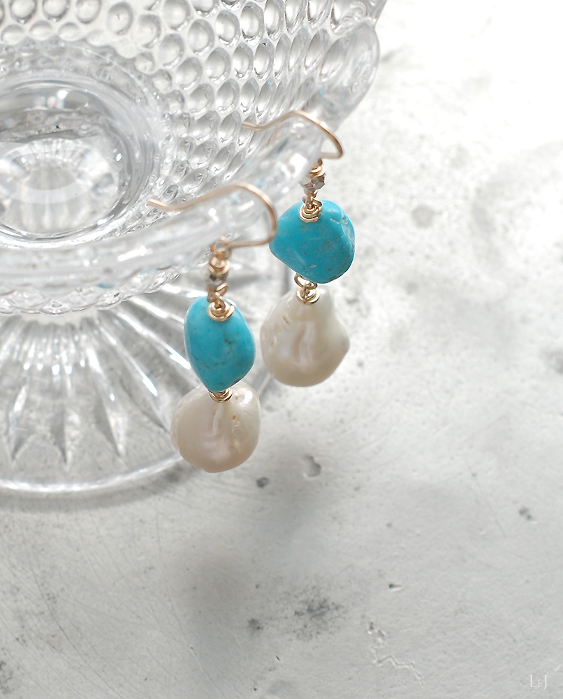 素材:有核バロックパール・アリゾナターコイズ・K14ゴールドフィルド