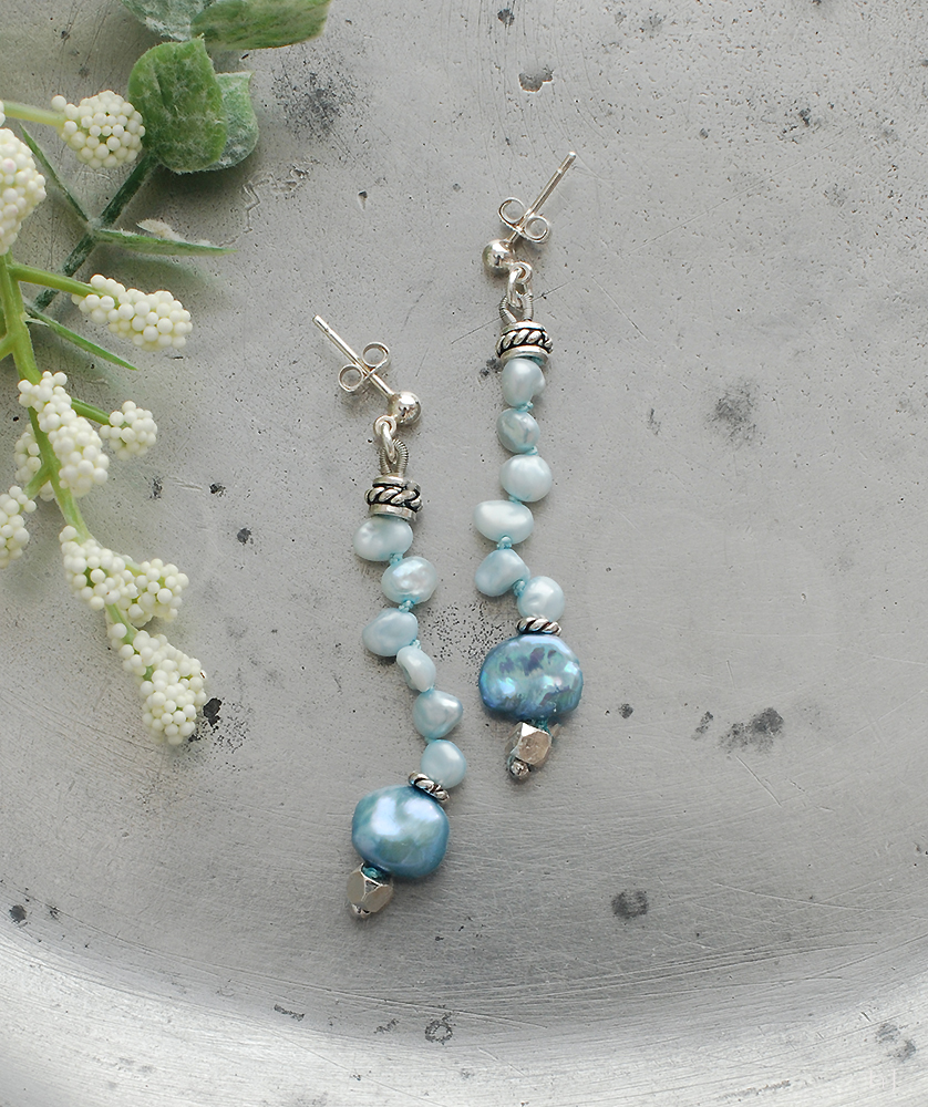 果てしないくらいにバリエーションがある淡水パールにも、ひと目見て大好きになるものがあります。このベビーブルーのちいさなパールもそうでした。