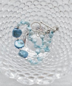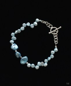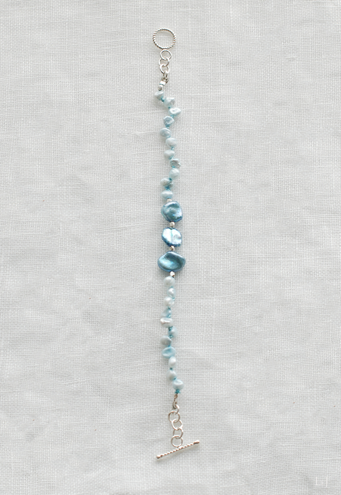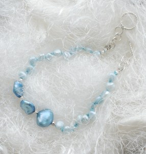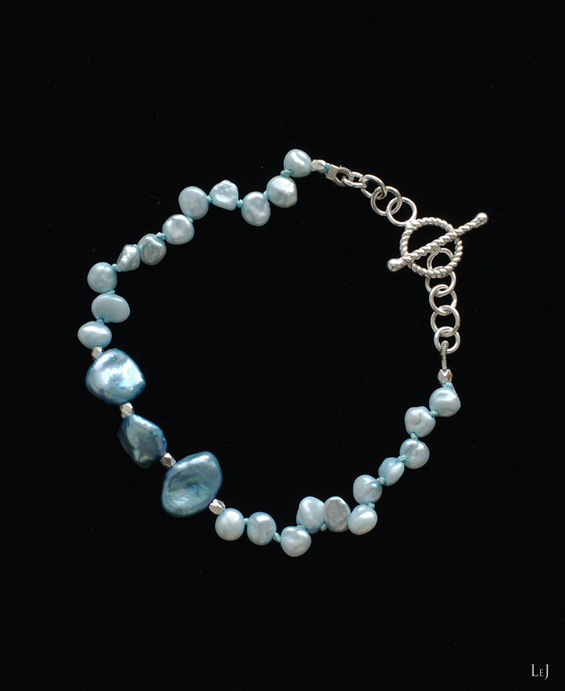 素材:ベビーブルー淡水パールクレオパトラ・メタリックシルバー淡水パール・シルバー925・シルク糸