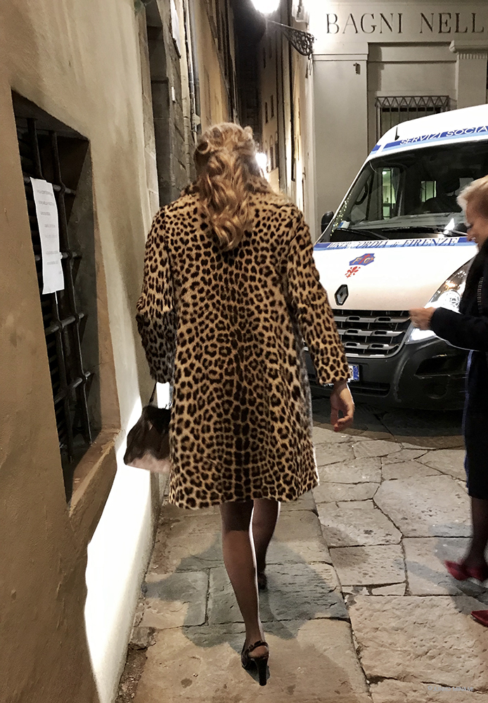ふだんは普通に仕事をしている女性が結婚式に出るために髪をセットしてハラコのファーのジャケットを羽織るだけで、このムード。冬の石畳なのにサンダルを履いて。ふと思ったのですが、これはやはり文化の違いが関係していて、常にパートナーと一緒にカップルで行動するスタイルが作り出すものだと思います。ヨーロッパに行くと、カフェやレストランにいるのは90%以上がカップルです。