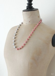 ピンク&シルバーそしてゴールド色が溶け合ったジュエリーです。長さは67cm。